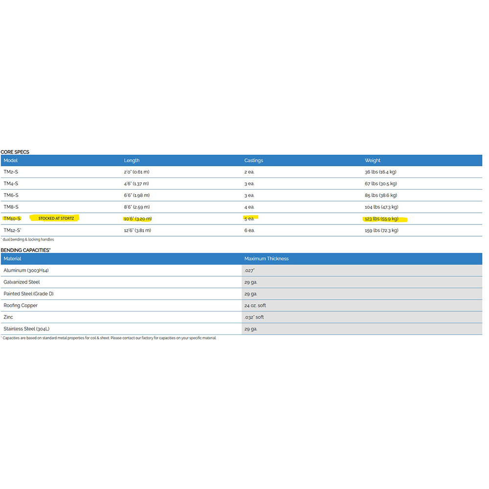 Designed for onsite bending for metal roofers on architectural projects. Bend 24ga painted steel onsite